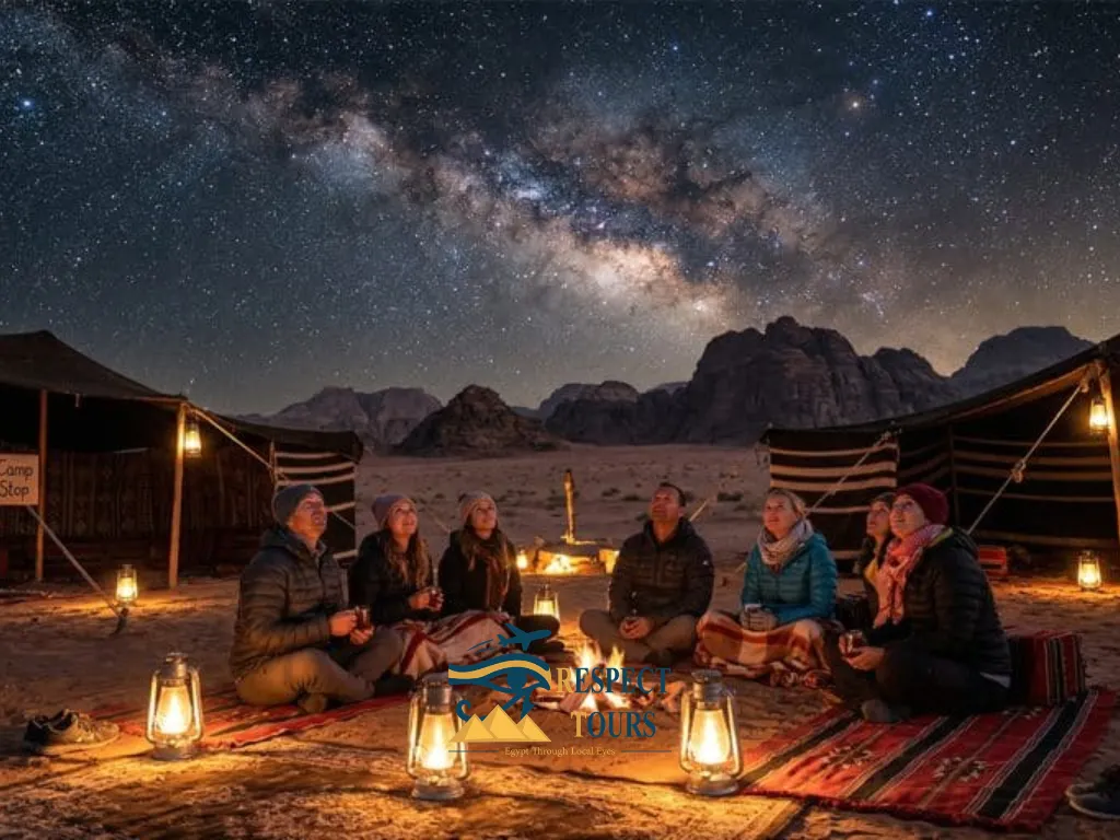 In the evening, enjoy a freshly prepared Bedouin-style dinner served in a traditional setting. The night continues with live entertainment, including dancing, folkloric performances, and a fire show, creating a lively and memorable atmosphere under the stars.